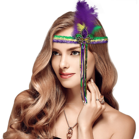 Hlc מרדי גרא זורק רצועת שיער נוצה עם מסכות sequin astrich נוצה ראש עבור ניו אורלינס אספקה למסיבות giveavway